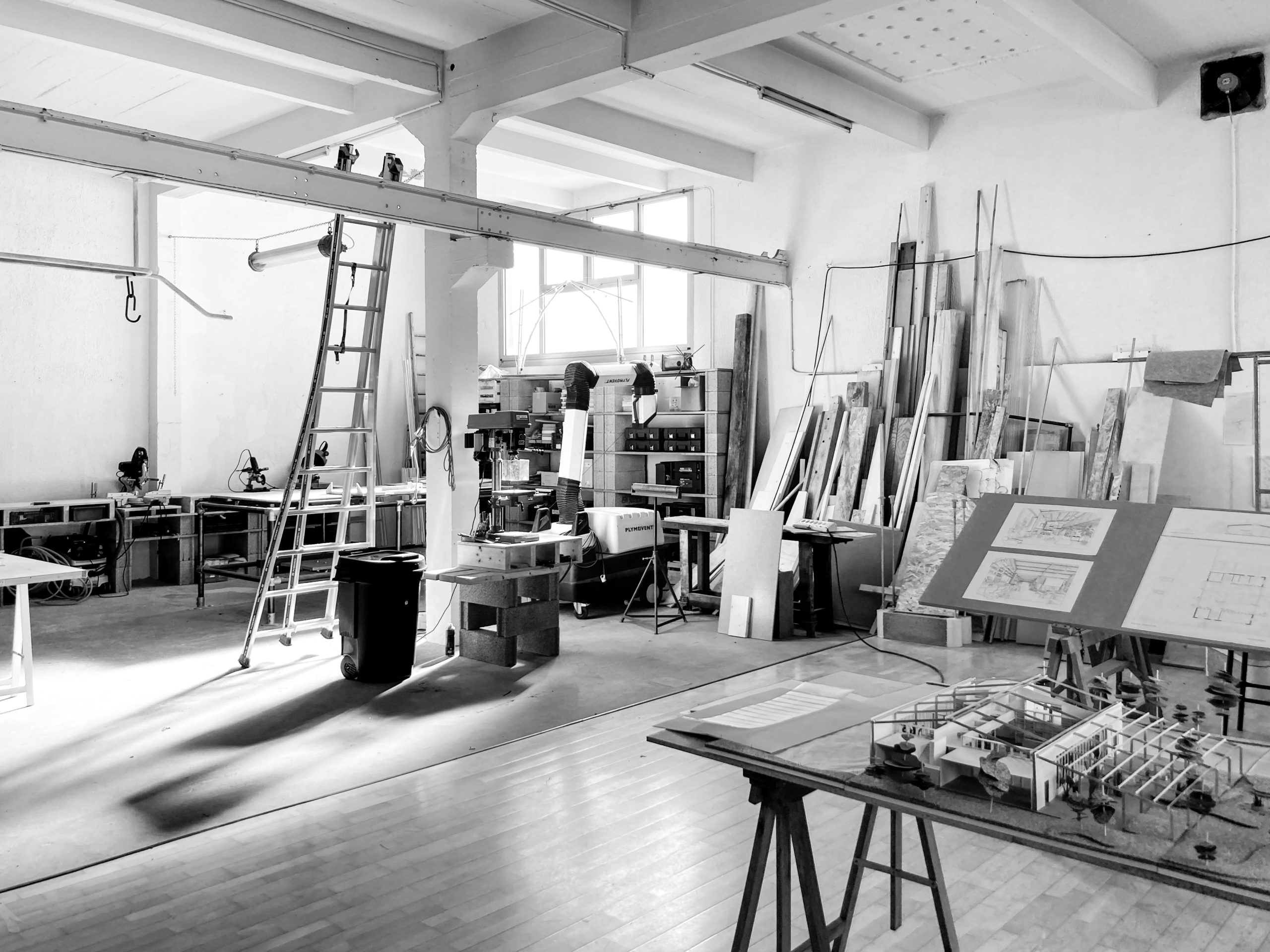 Gru dispose d’un atelier pour mettre en pratique ses idées et explorer les chemins qui mènent un projet fictif à une réalité construite. C’est un espace dans lequel l’expérimentation, le prototypage et la fabrication participent pleinement de la démarche de projet. C’est un outil de transformation des contraintes en solutions créatives.